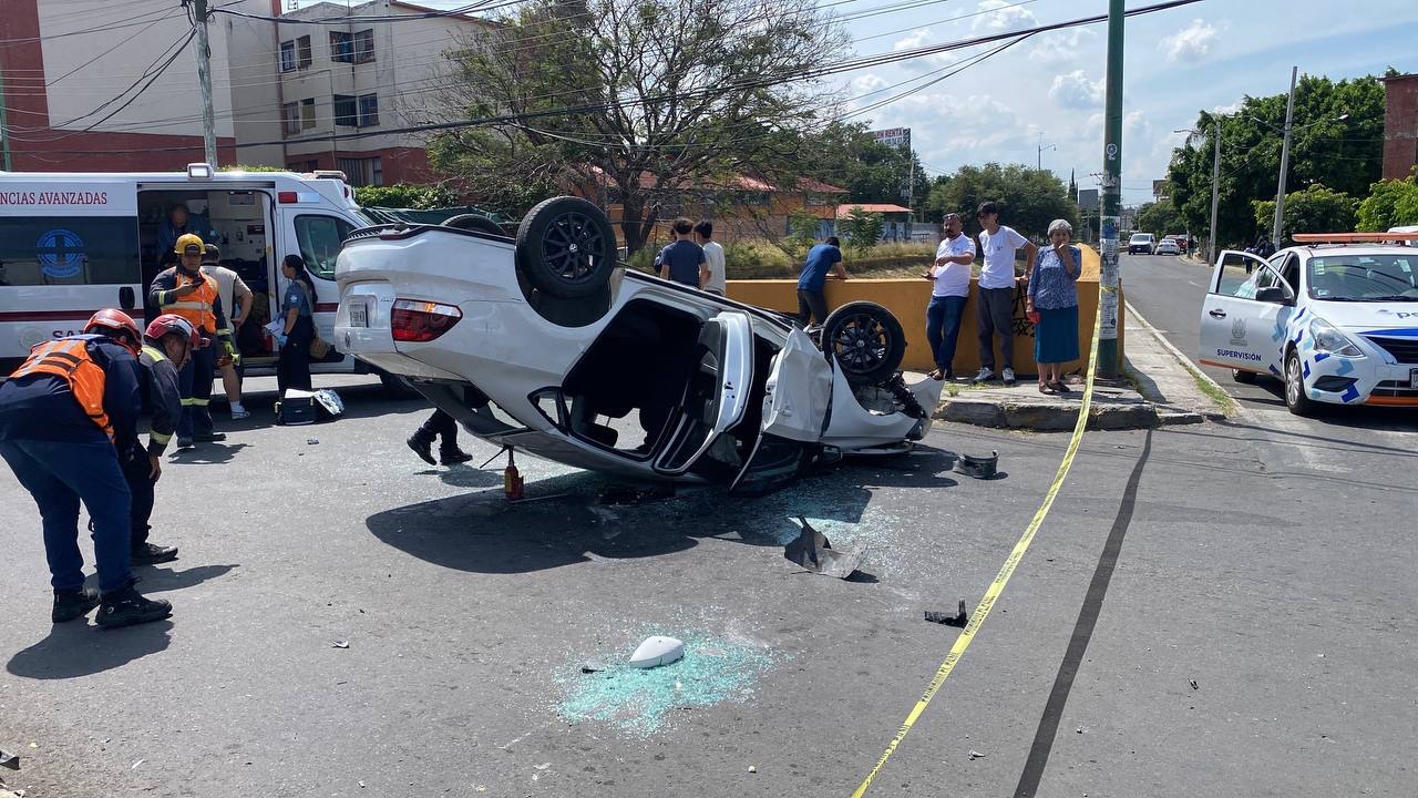 Plaga, suspensión y ahora accidente: alumnos de la Prepa Sur protagonizan volcadura en Avenida Cimatario