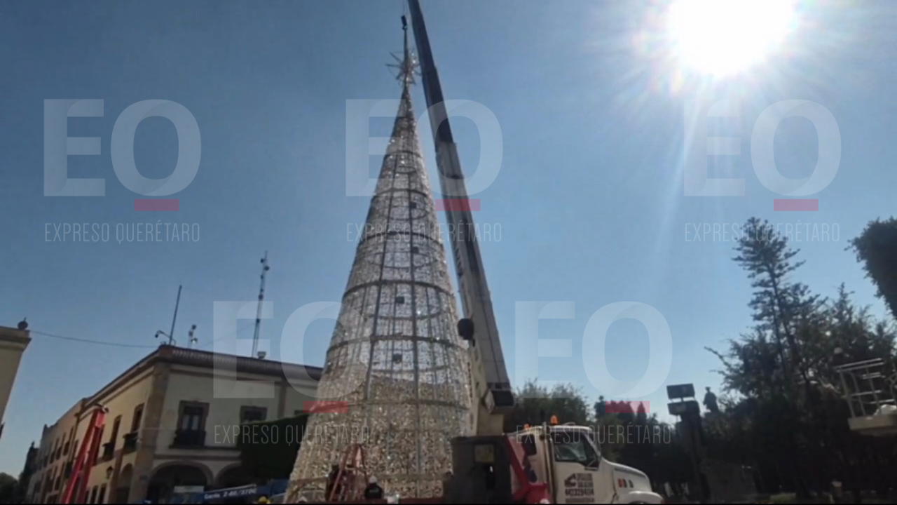 Querétaro ya huele a Navidad: así se ve la instalación del Mega Árbol en Plaza