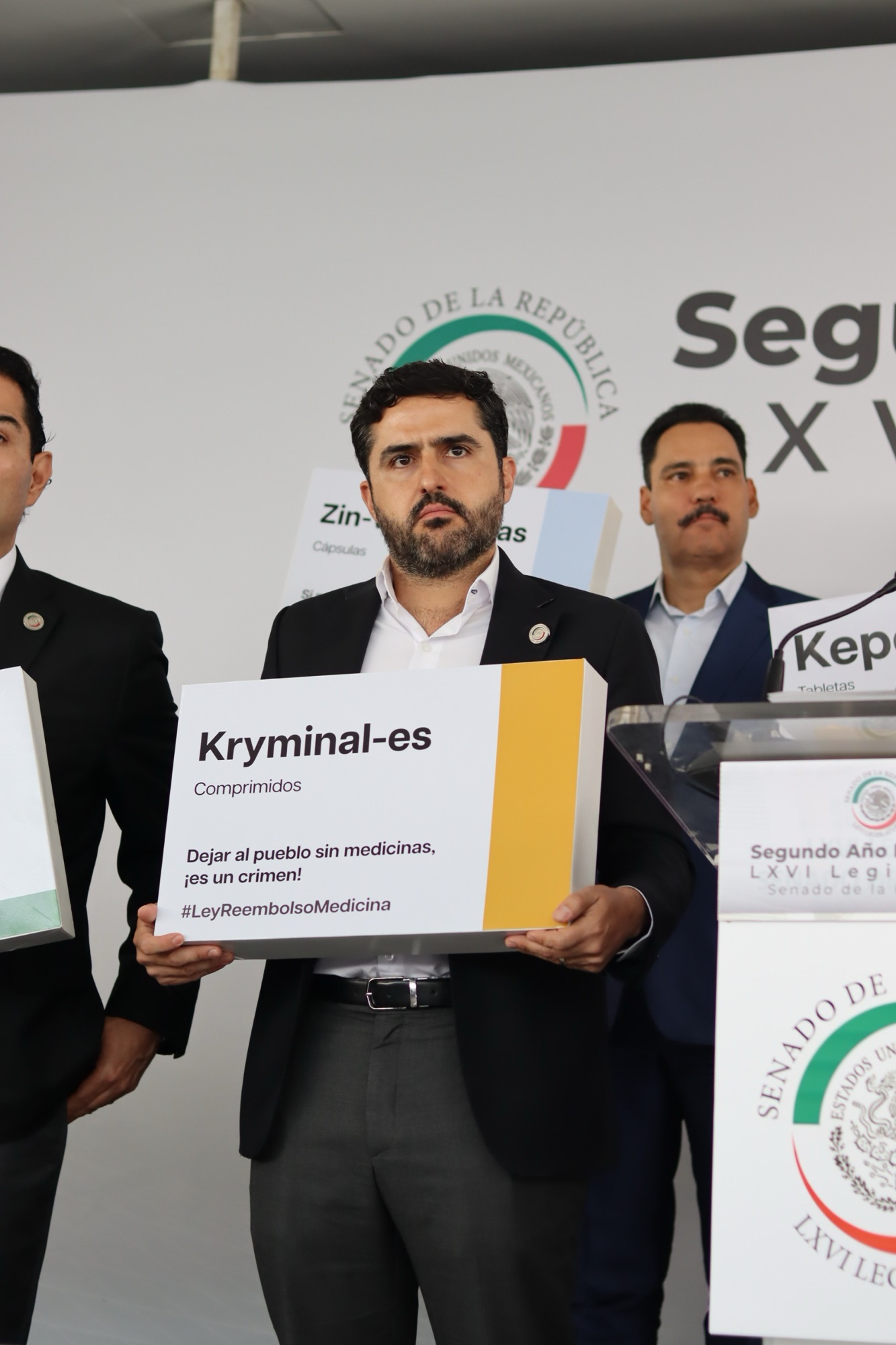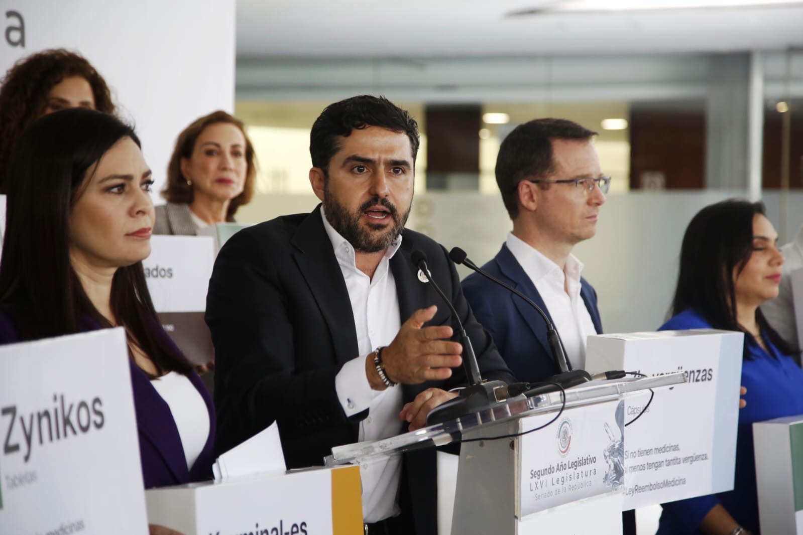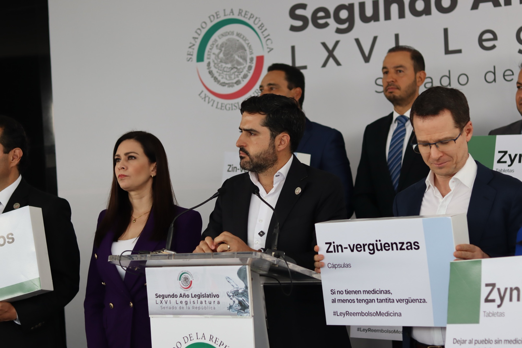 “El día de hoy venimos a presentar una iniciativa que ha trabajado con enorme esfuerzo, con enorme dedicación, el senador Agustín Dorantes de Querétaro. El planteamiento que hoy presenta esta iniciativa, y él lo expondrá con todo detalle, es muy simple. Si el gobierno no le entrega a la gente los medicamentos como es su obligación, el gobierno estará obligado a reembolsar, a pagarle al ciudadano lo que el ciudadano haya tenido que gastar en los medicamentos. Le quiero hacer un reconocimiento al senador Agustín Dorantes por este esfuerzo, por este trabajo tan profesional, pero sobre todo por pensar en la gente, porque quienes están pagando los platos rotos de esta negligencia criminal son los ciudadanos y las ciudadanas de México”.