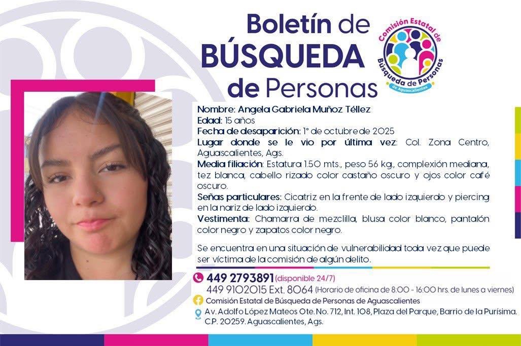 La Fiscalía General del Estado de Querétaro confirmó la localización sin vida de Ángela Gabriela Muñoz Téllez, de 15 años de edad, quien había sido reportada como desaparecida en Aguascalientes el pasado 1 de octubre. Su cuerpo fue encontrado en la comunidad de Fuentezuelas, municipio de Tequisquiapan, tras una solicitud de colaboración emitida por la Fiscalía de aquella entidad.