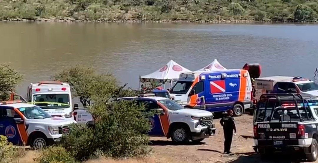 Elementos de Protección Civil realizan labores de búsqueda y recuperación en la presa de El Carmen, ubicada en el municipio de El Marqués, luego de que una persona fuera reportada como fallecida por ahogamiento la noche del día de ayer.