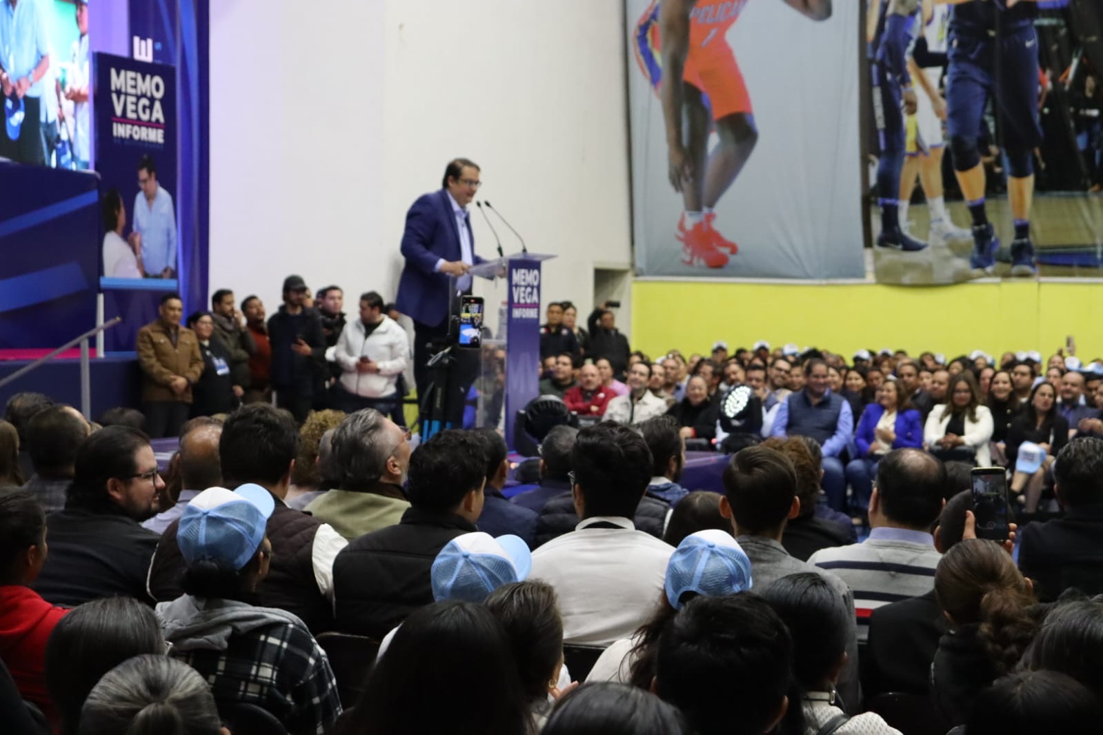 Ante un auditorio del CECUCO abarrotado, el Diputado Memo Vega rindió su informe de Actividades, acompañado de su familia, de más de 1500 asistentes, miembros del Gabinete estatal, de la dirigencia del PAN, del jefe de Gabinete del Estado, Rogelio Vega, del Secretario de Gobierno, Eric Gudiño, del Presidente Municipal de San Juan del Río, Roberto Cabrera, funcionarios municipales y representantes de cámaras empresariales.