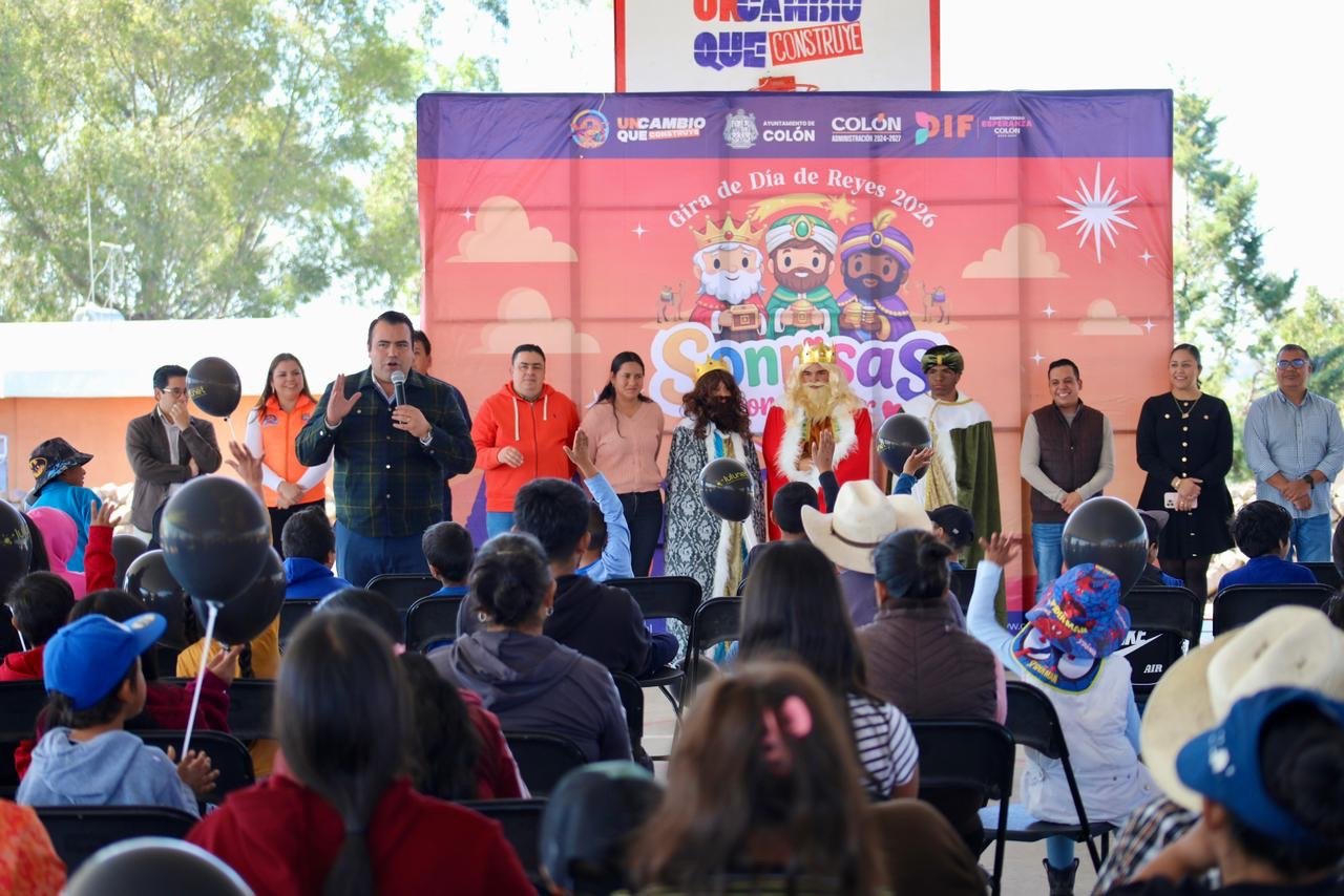 Durante su intervención, el Presidente Municipal destacó la importancia de la tradición del Día de Reyes y su compromiso con la niñez colonense, durante diversos eventos en los que acudieron asimismo padres de familia.