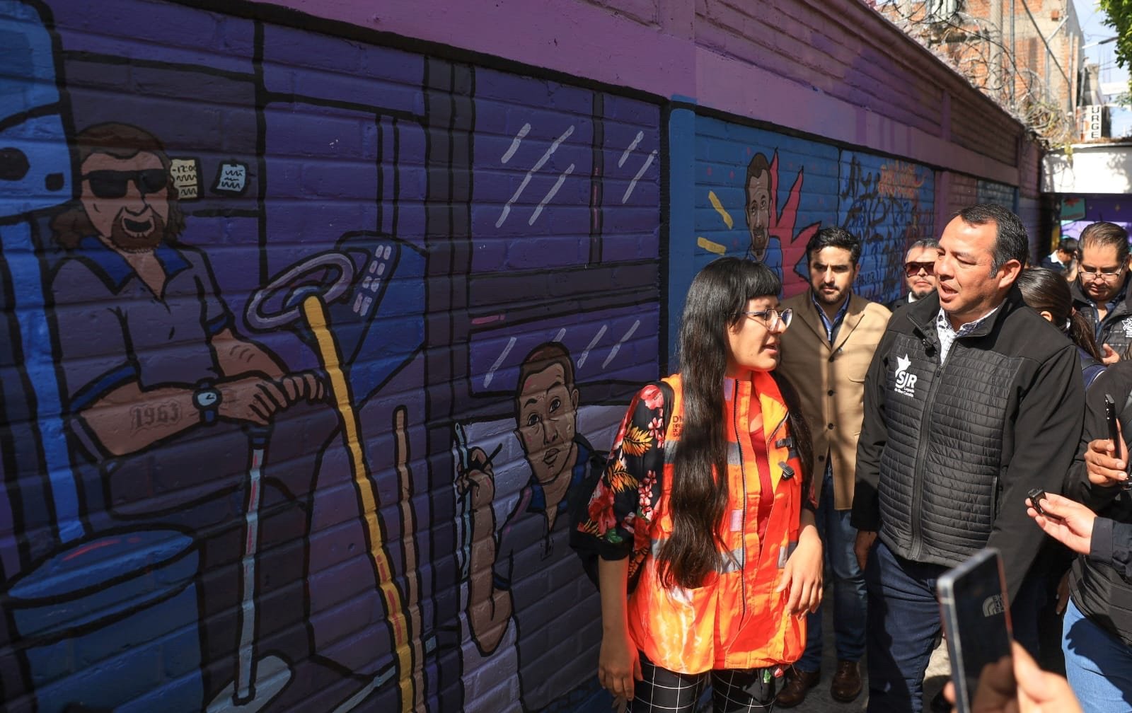 Asimismo, por medio de la Dirección de la Juventud, se realizó un mural, en el cual se representa la historia de esa zona del municipio de San Juan del Río, donde se plasmaron los personajes históricos del lugar, así como las siluetas de las personas que, día con día, protagonizan la vida diaria en la calle 5 de Mayo. Esta obra fue realizada por la artista “Lau” Barajas y su equipo de trabajo, quienes realizaron una investigación previa para definir los elementos a plasmar.