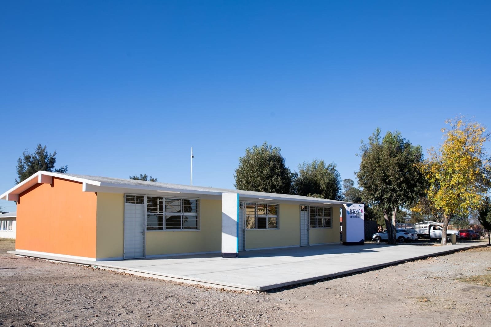 La secretaria de Obras Públicas y Desarrollo Urbano, Edith Álvarez Flores, detalló que, para la construcción de las aulas, se llevaron a cabo labores de cimentación, colocación de cadenas, castillos y trabes, trabajos de albañilería, acabados e instalación de mobiliario y equipamiento; asimismo, indicó, se construyeron los andadores.