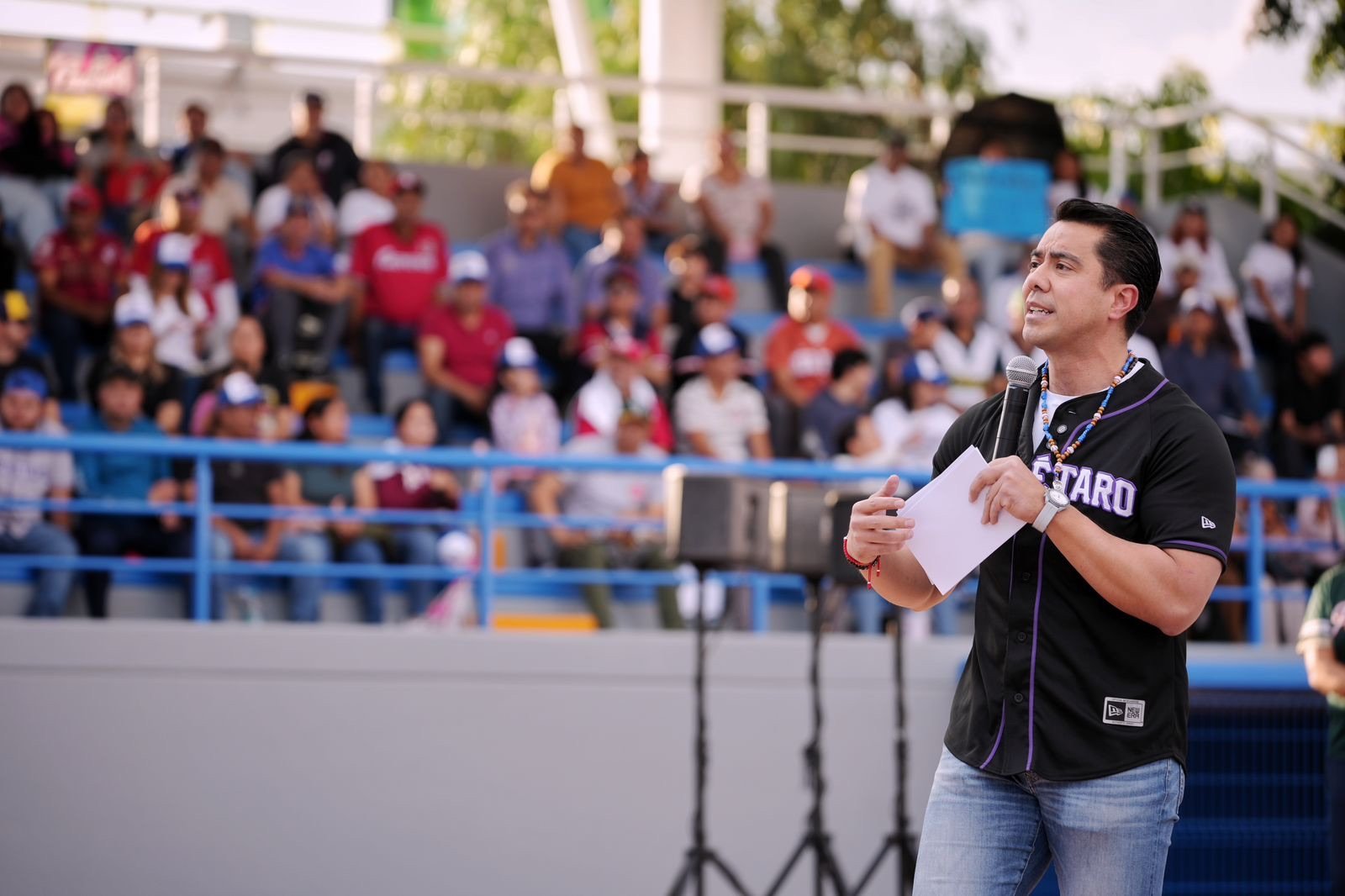 Del total invertido, 16.2 millones de pesos corresponden a recursos municipales, los cuales permitieron la renovación del pasto sintético del campo de béisbol, la rehabilitación de gradas de fútbol, baños y accesos, así como trabajos de pintura en gradas, cancha de básquetbol, pista de patinaje, puentes y fachada del complejo.