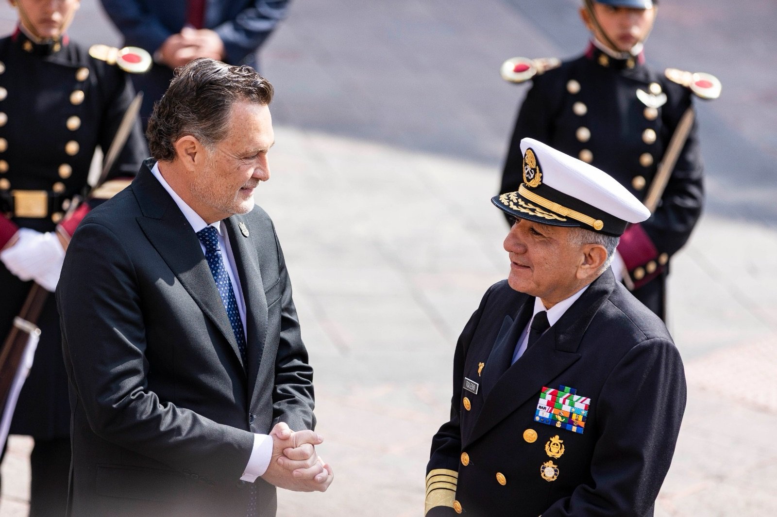 A las 10:55 de la mañana, Kuri González fue visto dialogando con los secretarios de la Defensa Nacional y de Marina, minutos antes de la llegada de la presidenta de México. El convoy presidencial avanzó por avenida Universidad y calle Juárez, donde la camioneta de la mandataria se detuvo momentáneamente para recibir folders, sobres y peticiones ciudadanas, mientras el gobernador y los mandos militares aguardaban en la esquina siguiente para recibirla formalmente.