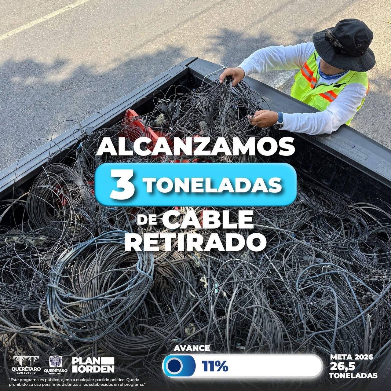 Durante 2025, el programa permitió el retiro de 26.5 toneladas de cables en distintas vialidades de la capital, mediante operativos coordinados con 14 empresas de telecomunicaciones.