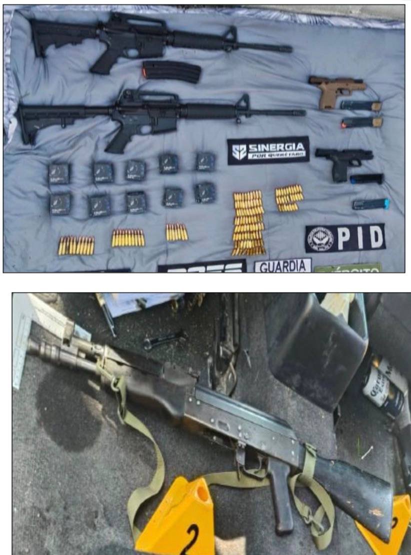 Durante el operativo, se solicitó la intervención del Ejército Mexicano para asegurar dos inmuebles, donde fueron localizadas seis armas de fuego —cuatro largas y dos cortas—, 12 cargadores, 587 cartuchos útiles, dos granadas de fragmentación, dos vehículos y diverso equipo táctico y electrónico.