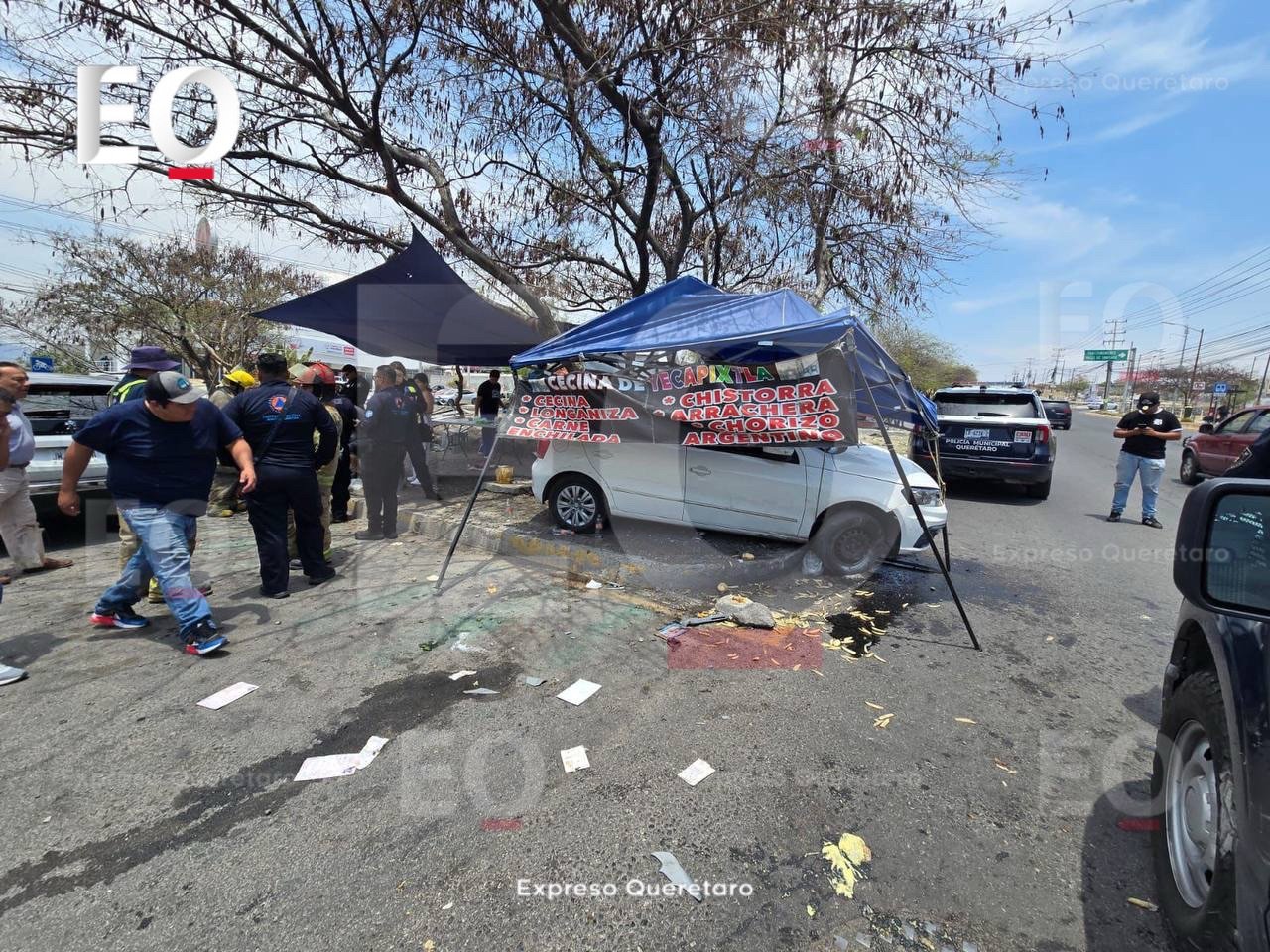 En su trayectoria, atropelló a una mujer y a un menor de aproximadamente cinco años, para posteriormente impactarse contra puestos de comida ubicados en la esquina, donde resultaron lesionadas cuatro personas más.