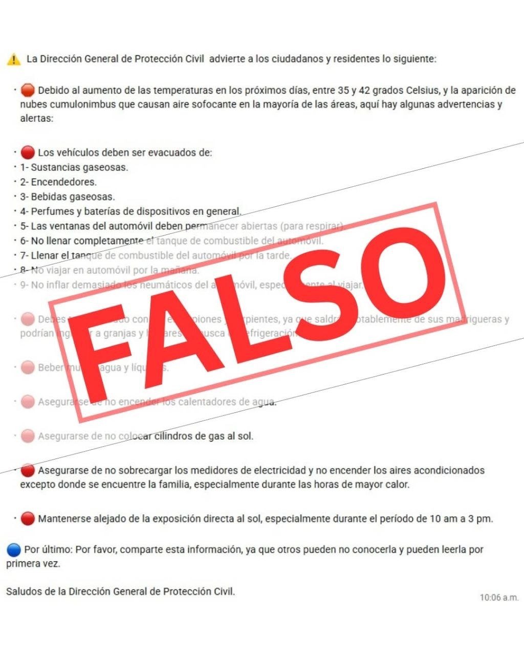 Asimismo, señalaron que la cadena mezcla recomendaciones reales con afirmaciones incorrectas, incluyendo sugerencias que no forman parte de protocolos de seguridad, como evitar viajar por la mañana o no llenar completamente el tanque de combustible.