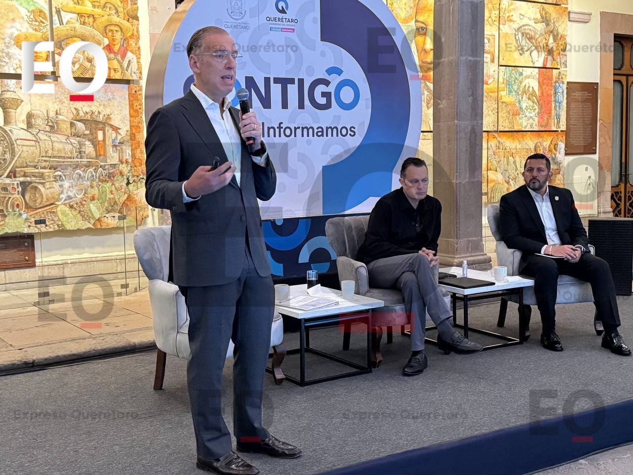El gobernador del estado, Mauricio Kuri, junto con el secretario de gobierno, Carlos Alcaraz, y el secretario de Desarrollo Sustentable, Marco Del Prete, dan a conocer detalles de los proyectos…