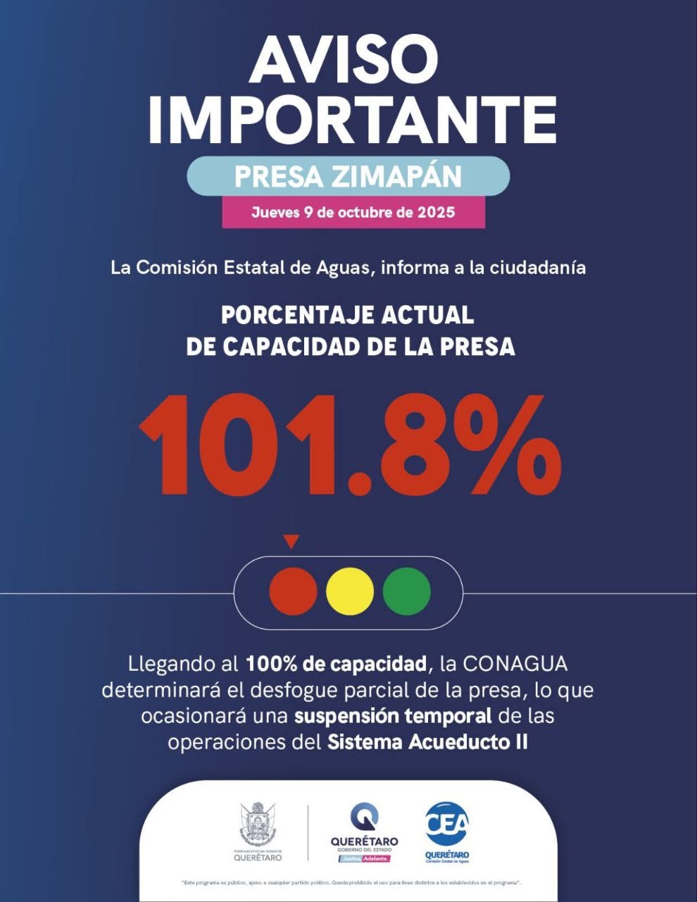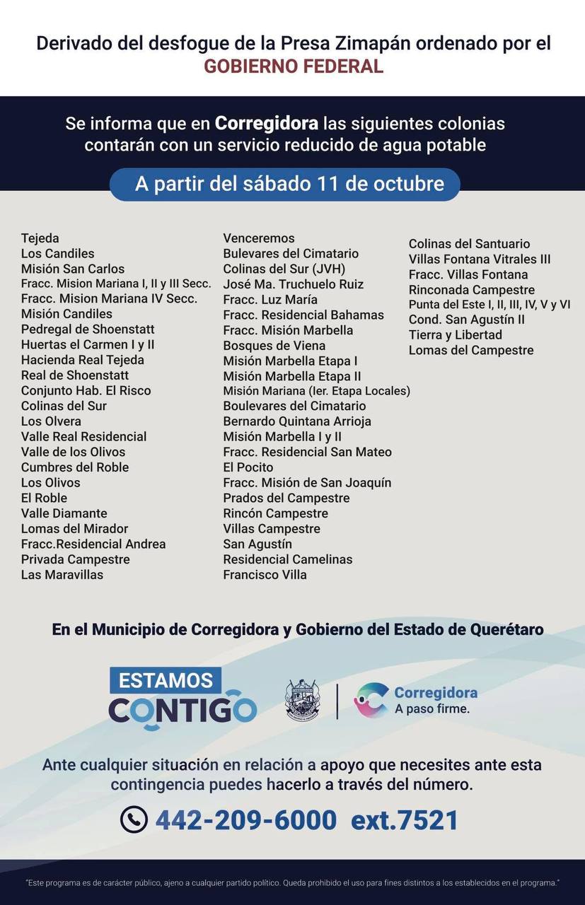 Estas son las colonias de Corregidora que tendrán reducción de agua por el desfogue de la Presa Zimapán