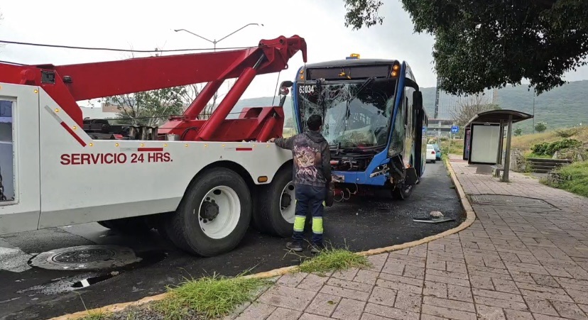 Aparatoso choque de Qrobús en Centro Sur deja solo daños materiales