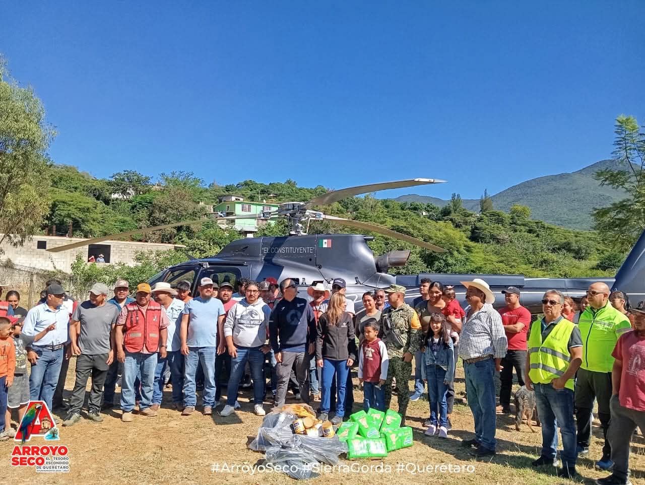 Helicópteros estatales llevan ayuda a familias afectadas por lluvias en la Sierra Gorda